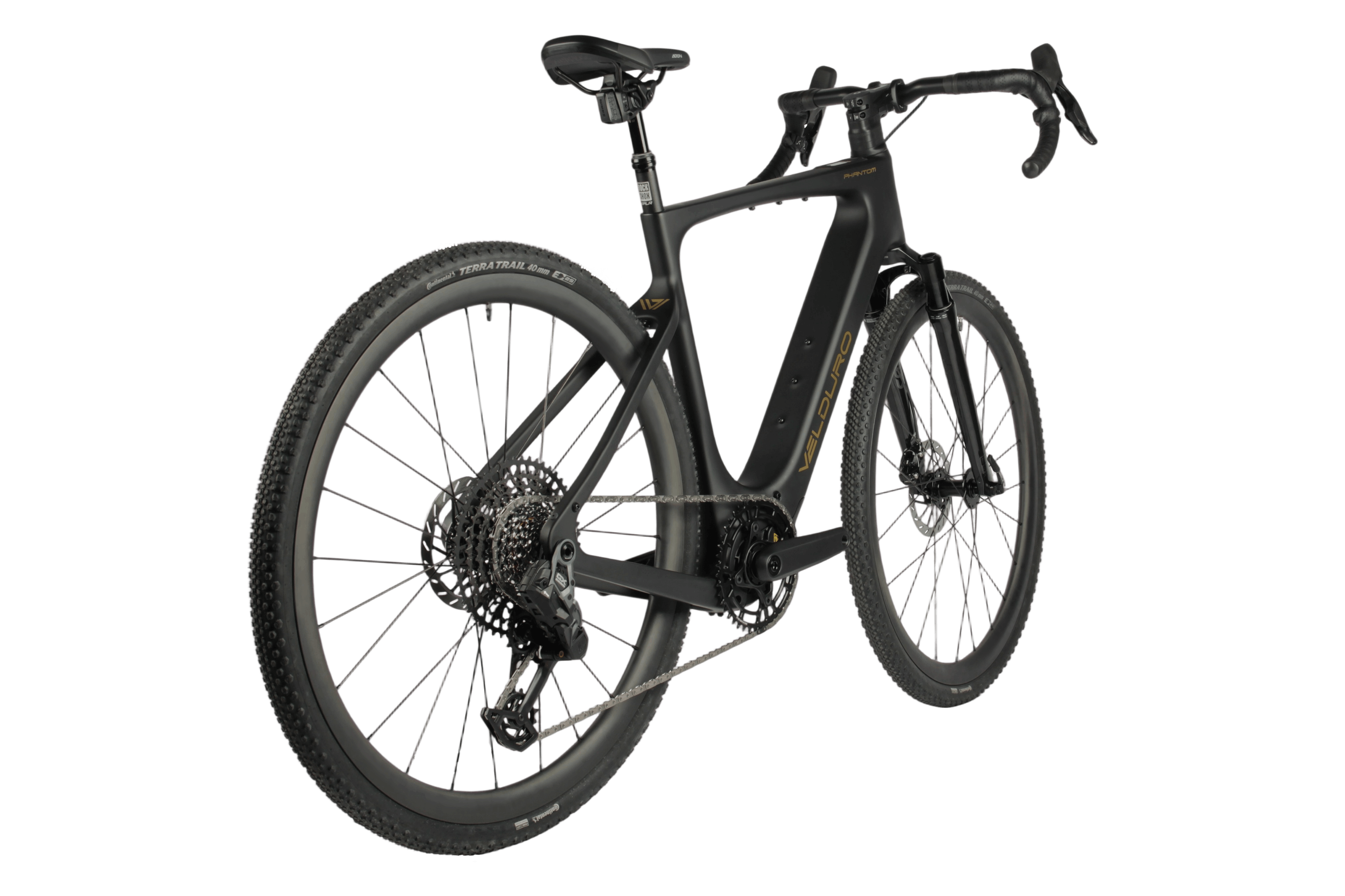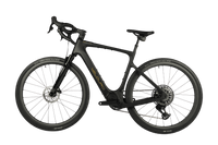 - Frame: Carbon fibre, gravel category, battery integrated, inner cable routing, 12X142mm, 8 mounting points, rack compatible